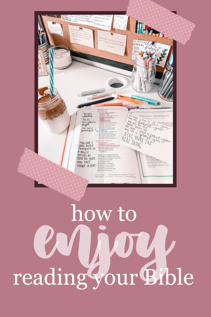 Find joy through your salvation. The only true joy we could find is through Him (-Psalm 16:11). So if you want to enjoy reading your Bible, have a sincere heart, and make your request know to Him. He is faithful, He is good, and He will help us through every day.